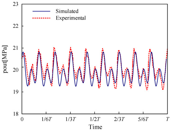 Discharge pressure comparison between the simulated and measured results (under the discharge pressure of 20 MPa and rotational speed of 1000 r/min).