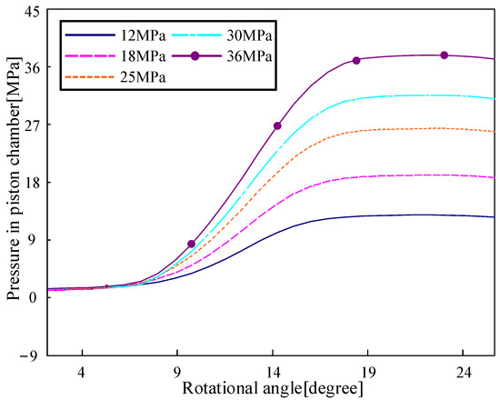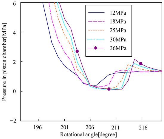 Similarly, at the shaft rotation angle , the pressure of the piston chamber has a undershoot because the piston chamber changes from a completely closed state to a triangular groove connected to the low-pressure port.