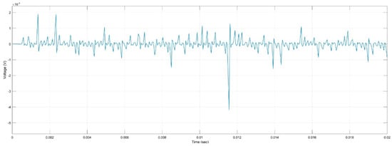 where δ = 1 is the relative density of the air, and l is the gap length in cm. Moreover, when the PD is ignited, the current on the air void increases and decays gradually. The upper bound of the PD duration is 10 ns and this value corresponds to a decrease by half in the current, relative to the peak value, and that is why the current is calculated as half of the peak value.