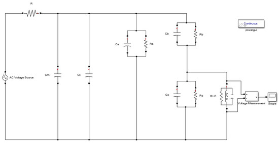 The capacitive model is an equivalent circuit of three capacitors, which was first presented by Gemant and Philipoff in 1932, and since then many different proposals have been made to improve this model. Figure 2 presents the capacitive model created in MATLAB/Simulink, the elements of which are presented in Table 1 [3].
