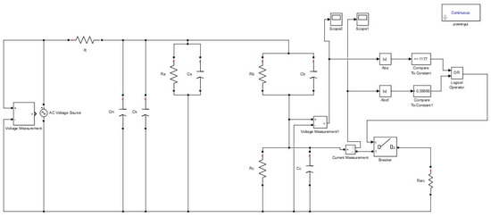 The following Figure 22 shows an advanced model created in MATLAB/Simulink, which consists of capacitors and resistors. Besides them, new parameters have been included in this model [16,17]: