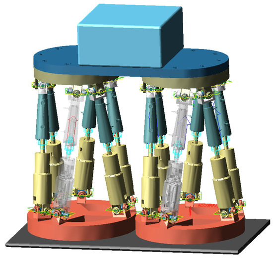 Many scholars have researched kinematics and dynamics on the parallel manipulator [1,2,3,4]. Most of the research on the MCPM focuses on the combination of the drive unit as a module or the parallel manipulator as a module. Arrouk et al. [5] designed a 3-CRS parallel kinematic machine (PRM) consisting of three modular kinematic chains. Tang et al. [6] designed a new modular-based hybrid PRM using the joint as a module. Zhang et al. [7] designed a generalized spherical parallel mechanism with partially decoupled characteristics by combining position and orientation modules. Hao et al. [8] used identical spatial modules to construct a large-range modular XYZ compliant parallel manipulator. Until now, the research of parallel manipulators with redundant actuation focuses on adding one or several redundant drives based on a particular configuration. Wu et al. [9] added an RRR leg to the planar 2-RRR parallel mechanism. Xi et al. [10] added a redundant leg to the three-degrees-of-freedom (DOF) tricept parallel mechanism. Yao et al. [11] added actuation to the middle PRPU branch of the 5UPS parallel platform. Zhao et al. [12] added two PSS legs to the planar 6PSS parallel manipulator. However, there are few studies on the Stewart platform as a modular, redundant unit.