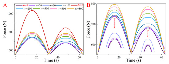 This section uses the M-P, minimize-the-maximum, and improved optimization methods to calculate the driving force of MCPM (M = 1, N = 2 and M = 2, N = 2) in the given trajectory to confirm the superiority of the improved optimization method. The penalty coefficients of the improved optimization method are set as 0, 30, 50, 100, 200, 300, 500, and 800 for calculation. When w = 0, the improved optimization method is equal to the minimize-the-maximum method.