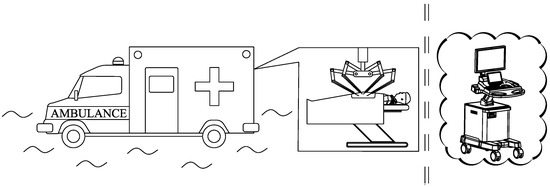 Depending on task spaces, OBMs can be further divided into two categories: the inertial and non-inertial type of OBMs. Most of OBMs are belong to the former type, which are working in the global Cartesian coordinate. Our study here relates to the latter type, in particular to a vehicle-mounted manipulator [9,10]. One of the most typical representatives is the telesurgery robotic manipulator installed on the vibrating mobile healthcare vehicle, as presented in Figure 1. It is operated in the base-fixed coordinate.