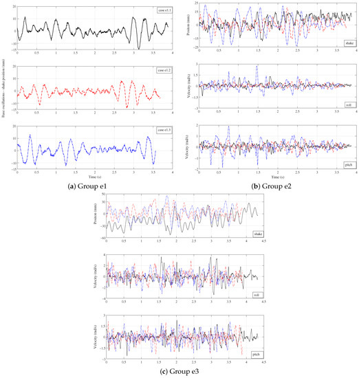 Group e2: Similarly, this group also carried out three cases of experiments with three different payload uncertainties. The sinusoid shake base oscillation is considered.