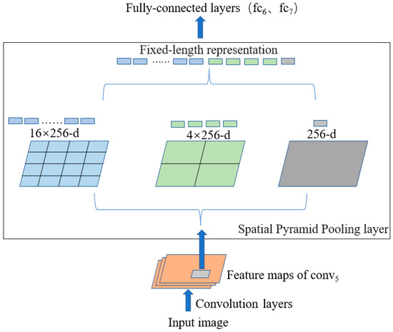 The feature fusion network uses the SPP (Spatial Pyramid Pooling) structure and the PANet (Path Aggregation-Network). The SPP structure solves the problem that the input image size of CNN (Convolutional Neural Networks) must be fixed and can make the input image size unrestricted; the SPP structure is shown in Figure 2.