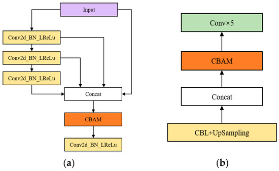 (a) CBAM fusion in feature extraction network; (b) CBAM fusion in feature fusion network.