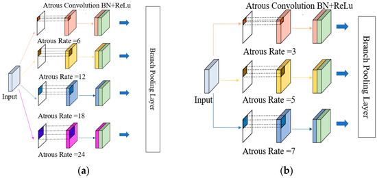 (a) Structure of the original ASPP; (b) structure of the improved ASPP.