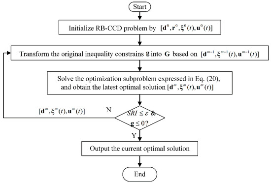 Step 4: Calculate the SRI of and the values of inequality constraints ; if SRI and the values of satisfy the convergence condition in Equation (15), stop the solving process; otherwise, deliver to Step 2.