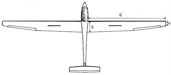 where is the lift coefficient, is the drag coefficient, is the parasitic drag coefficient, denotes the induced drag factor. means area of the trapezoidal wing calculated by the bases and the height , which are showed in Figure 6.