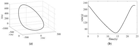GPOPS-II is applied to solve the above CCD problem of the glider dynamic soaring system, the optimal values of the objective function and design variables are listed in Table 2, and the optimal state trajectories and control curves are exhibited in Figure 7 and Figure 8.