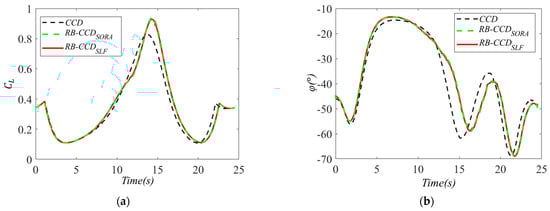 Differently from CCD, RB-CCD for the glider dynamic soaring system takes into account the uncertainty of the plant design variables , and assuming that the standard deviations of are , , and . More importantly, the RB-CCD problem for the glider dynamic soaring system subjects to the following reliability constraints given in Equation (32) rather than inequality constraints given in Equation (30):