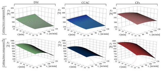 3.1. Parametric Analysis of the Influence of Input Variables on the Milling Force Components, Tool Wear and Surface Roughness
