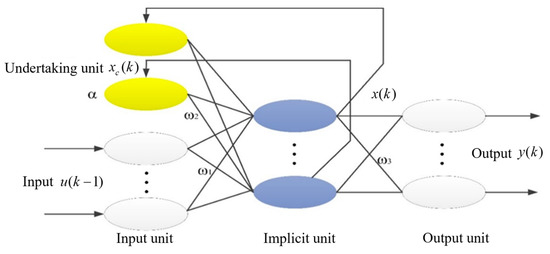 where u is the input of the network, is the output of the hidden layer, is the output of the undertaking layer and is the output of the output unit; is the connection weight of input layer and hidden layer, is the connection weight of undertaking layer and hidden layer, and is the connection weight of hidden layer and output layer; is the self-feedback gain factor of the undertaking layer; f is the transfer function of the neurons in the hidden layer, and is the sigmoid function: