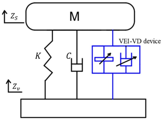 The VEI–VD device, combined with the conventional passive suspension, forms a VEI–VD seat suspension, as shown in Figure 1, where M is the mass of the body and seat; and are the spring stiffness and equivalent damping generated by friction, respectively; and are the displacements of the seat and vehicle cab floor, respectively.