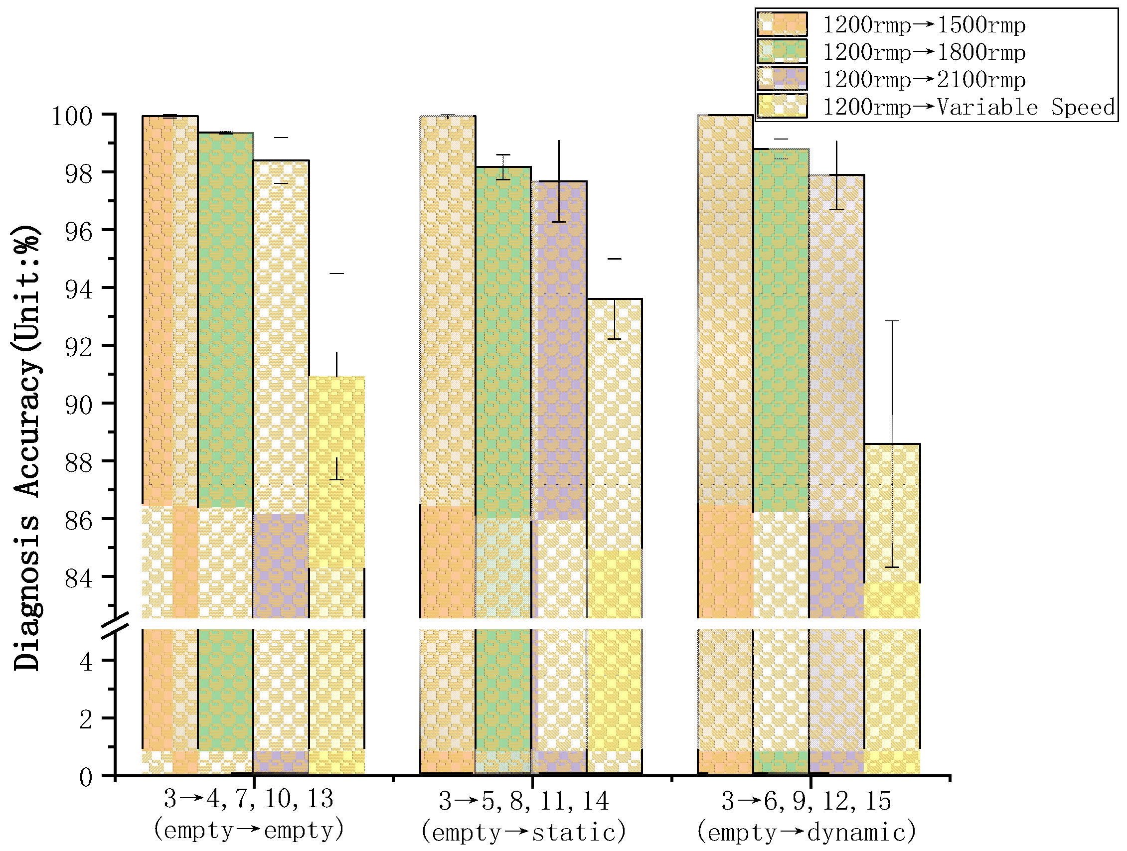 | 1200 rpm | Empty Load | 1 | - | 99.55% ±0.40 | 99.17% ±0.28 | 99.83% ±0.14 | 98.28% ±1.31 | 98.55% ±0.41 | 98.82% ±0.44 | 97.66% ±0.24 | 98.29% ±0.34 | 99.76% ±0.24 | 98.38% ±0.44 | 98.39% ±0.28 | 91.79% ±1.84 | 86.67% ±2.42 | 87.38% ±3.73 |