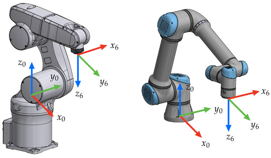 3.1. Kinematic Parameters of the Two 6R Articulated Robots