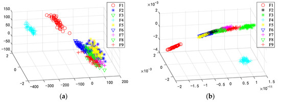 where is a diagonal matrix, and is the Laplace matrix. According to Equation (12), the smaller the distance between two near-neighbor sample points belonging to different classes in Euler space, the smaller similarity is assigned to them. By maximizing the objective function, the local inter-class features with more separation can be obtained.
