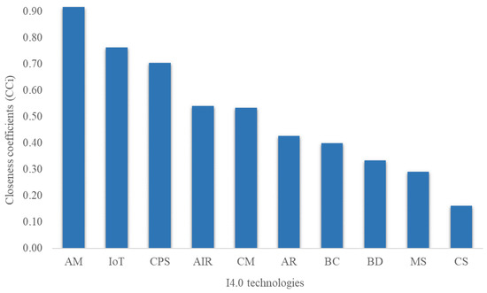 Figure 5 illustrates the ranking of I4.0 technologies and the closeness coefficients
