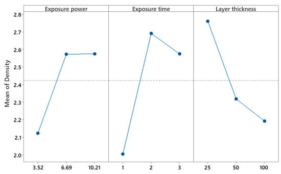 Effect of the process parameters on the mean of the density.