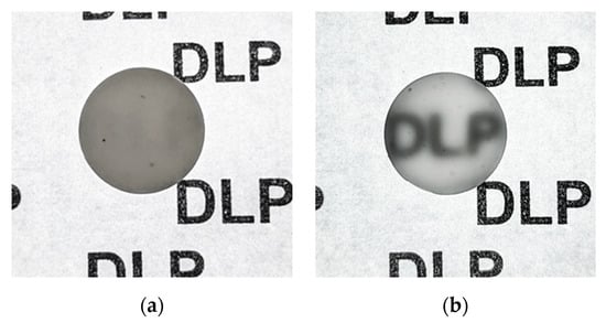 Recently, several intriguing experiments have been devoted to the fabrication via AM of ceramic components for special applications in micro-electro-mechanical-system [] or catalyst-substrate manufacturing [,,]. However, due to the great optical transparency and characteristic ceramic features of transparent ceramics, they are equally suitable for a wide variety of high-performance applications, such as lasers, armours, and lighting. There is a pressing need to simultaneously lower the weight of transparent armour systems and boost their ballistic protective qualities. When both mechanical strength and abrasion resistance are essential performance characteristics, material options are frequently restricted to a few materials [,,], such as aluminium oxynitride (AlON) [,,], sapphire (Al2O3) [], and magnesium aluminate spinel (MgAl2O4) [,]. Due to their great strength and hardness, these three materials have been investigated as possible replacements for ballistic glasses in transparent armour applications for quite some time, and ballistic tests have demonstrated that spinel, AlON, and sapphire exhibit comparable performance. Payne and colleagues [,] claimed that transparent yttrium aluminium garnet (YAG) ceramics may be created via a direct ink writing (DIW) approach, but that the subsequent CIP and HIP processes are still required. Wu et al. [] continued to use the extrusion-based AM method employing copolymer-assisted slurry so that complex-shaped transparent YAG ceramics could be immediately produced. Hostaša et al. [] manufactured YAG laser ceramics by lithography-based ceramic manufacturing (LCM) to demonstrate the benefit of lithography-based techniques in terms of spatial resolution and product form. Two-photon printing was used to create small transparent YAG objects with nanometric precision in the nanometre and micrometre ranges (TPP) []. However, studies on the DLP of translucent alumina starting from an in-house systematically developed slurry and its consecutive post-processing have yet to be explored.