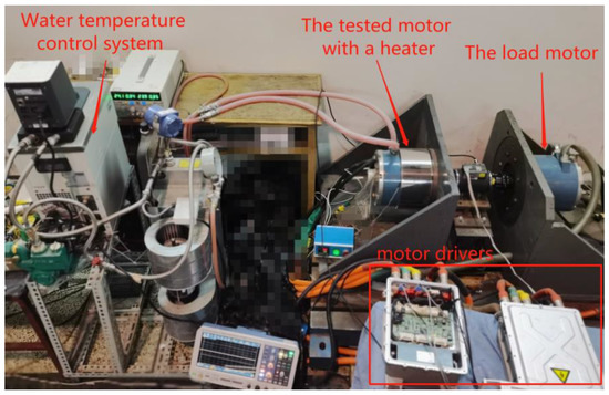 In order to independently verify the optimization accuracy of the torque compensator, the torque–current mapping unit in Figure 9 was first removed. As shown in Figure 21, the angle optimization unit in Figure 15 is replaced with the formula MTPA method based on nominal parameters. Under the condition that the motor runs stably at 2000rpm and the torque command is 30N·m, the measured motor is heated by a heating device, and the experimental results before and after replacement are compared.