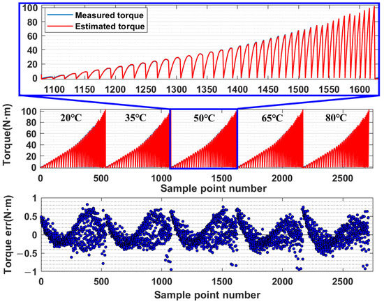 In the proposed method, the acquisition of multi-temperature experimental data inevitably increases the experimental cost, and it still needs to be explored how to achieve a reasonable compensation effect by using the fewest experiments. When the computational power of embedded processors is gradually increaed, one direction of this research is to develop a high-performance torque observer through the torque model and online voltage deviation compensation, and to use similar literature [23,24] and the method of online calculation, which has the potential to realize online optimization in real-time.