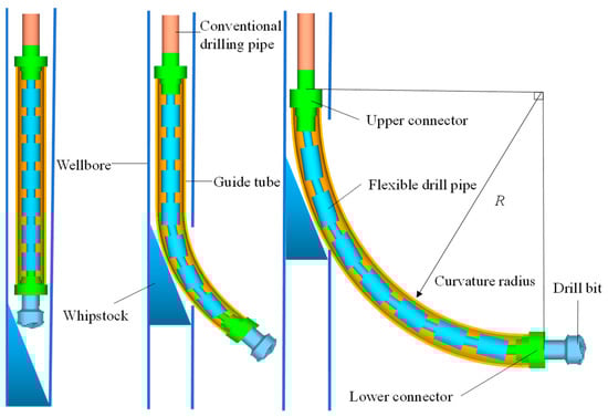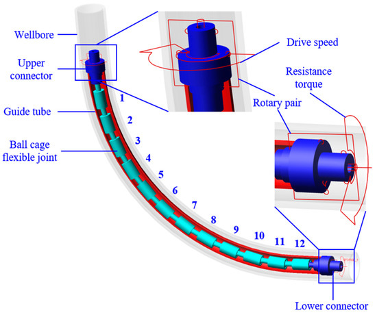 - The geometric relationship among borehole curvature, flexible joint length, and radius is derived, which provides criteria for the flexible joint size design to ensure the reliability of a flexible drill pipe in large curvature boreholes.