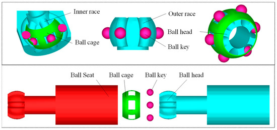 - Kimata, K.; Nagatani, H.; Imoto, M.; Kohara, T. Numerical analyses and experiments on the characteristics of ball-type constant-velocity joints. JSME Int. J. 2004, 47, 746–754. [Google Scholar] [CrossRef]