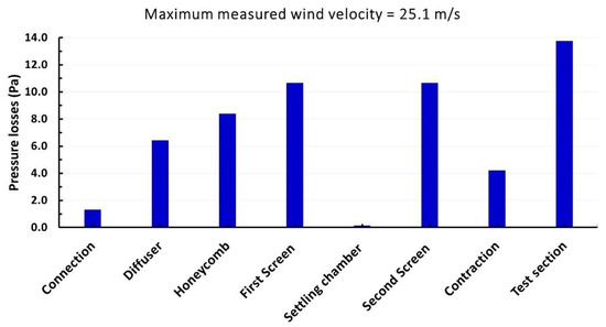 Wind tunnel component pressure losses for the maximum measured wind velocity (25.1 m/s).