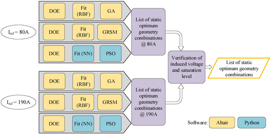 Figure 4. Block diagram of the static design: fit models and global optimizations used for two different current ratings [23].