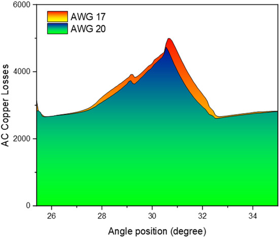 Figure 10. Comparison of AC copper losses for two different coil options.