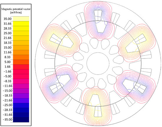 Figure 15. Magnetic potential vector in the dynamic model of 18/12 SRM.