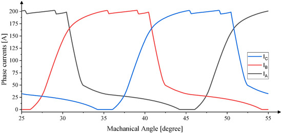 Figure 23. Dynamic phase current waveforms of LSA SRM at 2600 rpm.