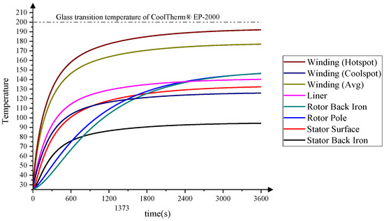 Figure 27. Transient thermal performance of the LSA SRM calculated in MotorCAD.