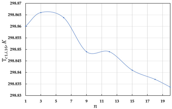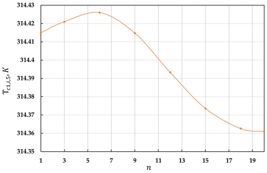 The integration time step, ∆τ, is a crucial parameter impacting the accuracy and stability of computations. Since we consider two closely coupled models, two integration steps need to be selected: ∆τ1 will be used to solve the unsteady heat diffusion equations, and ∆τ2 will be used to resolve the thermodynamic model (33)–(47). In general, their values do not coincide. To keep the computation efficient, the values of both ∆τ1 and ∆τ2 need to be as high as possible. On the other hand, an excessive increase in the time step will lead to the instability of numerical methods and, consequently, to computational inaccuracies. Thus, particular attention should be paid to selection of those values.