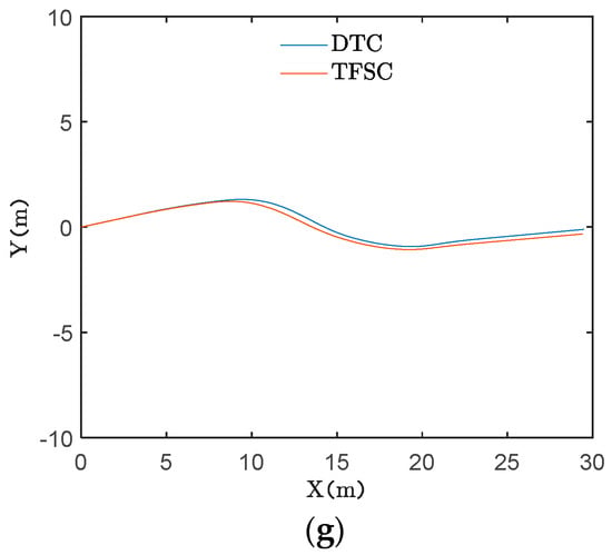 The data of the NTV prototype when driving on the “C”-type route is shown in Figure 13. The true tilting angles of the NTV prototype with DTC and TFSC are compared with the ideal tilting angle.