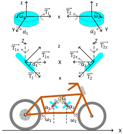 - Park, S.H.; Yi, S.Y. Active Balancing Control for Unmanned Bicycle Using Scissored-pair Control Moment Gyroscope. Int. J. Control Autom. Syst. 2020, 18, 217–224. [Google Scholar] [CrossRef]
