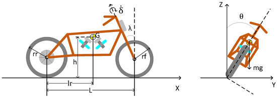 Figure 1 shows the overall structure of a two-wheeled motorcycle equipped with CMG, in which various types of motors are used for the actuators. The body motion coordinate system O-XYZ and the rotor motion coordinate system o-xyz are also established.