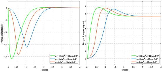 Simulation results: Self-balancing process of vehicle body under different accelerations.