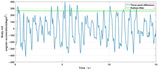 From Figure 21, it can be seen that the signal is of very poor quality in the case of stationary running SGCMG, and the amplitude and frequency of the signal are too high for the controller to use it as a feedback signal. Therefore, this chapter considers the filtering of the signal. Since the controller designed in this paper needs to control the of the car body, the real-time requirement of the signal is strict, so the Kalman filtering method is used to process the signal in this section.