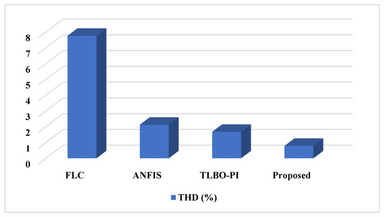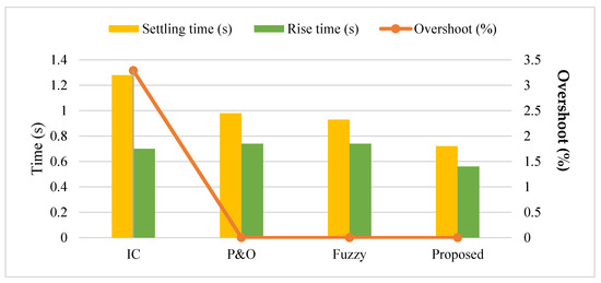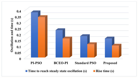 Figure 23 and Figure 24 compare the THD, steady state oscillations and rise time of the conventional [47,48] and proposed optimization based controlling techniques used in the grid-PV systems. The estimated results state that the value of THD is effectively reduced in the proposed system when compared to the other controlling techniques. Similarly, the steady state oscillations and rise time are also effectively reduced in the proposed system.