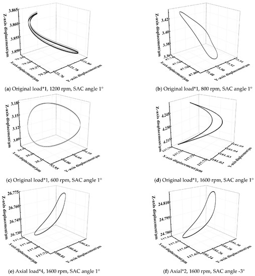 The motion orbit of the inner ring with different external loads, rotating speeds, and SAC angles.