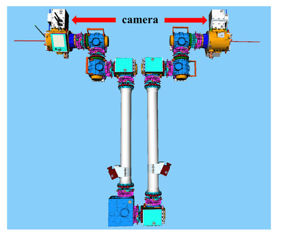 There are many activities to be accomplished by the Chinese space manipulator (CSM), such as aided cabin docking and carrying out scientific experiments. The CSM system includes the mechanical arm, the in-cabin operation equipment and the remote operation equipment settling in the ground. The mechanical arm consists of seven joints, two end-effectors, two arms, controllers, and cameras [37,38]. CSM measures the pose of the end-effector with a vision system. A camera is attached to the end-effector, which is referred to as an eye-in-hand, for photographing the calibration board which is settled around the manipulator and fixed on the outside of the space station. During the manipulator moving, the end-effector must keep the calibration board in the field of view of the camera. In comparison to the measurement equipment regularly used in ground experiments, the vision system a with large measuring noise requires an effective calibration method that can eliminate noise interference.