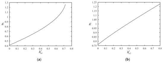 (3) In Figure 15a,b, when the constraint of the contact ratio is satisfied, the value ranges of the addendum coefficients and need to be further restricted. Based on the content in Section 3.2, it can be obtained by programming that the value range of the addendum coefficient of the external gear is 0.6179–0.7286, and the addendum coefficient of the internal gear ring is 0.3816–0.8 when the constraint of the contact ratio is satisfied.