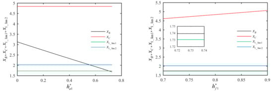 Furthermore, the limit range of the addendum coefficient and dedendum coefficient of the gear pair can be given according to Equation (27):