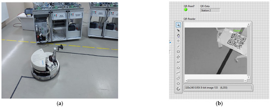 (a) In the case of mobile robot mapping. (b) QR code reader screenshot during physical test.