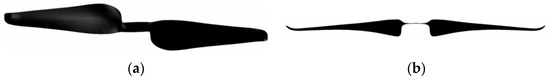 Propeller model. (a) Top view; (b) Front view.