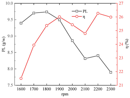 PL variation with rotor spacing is shown in Figure 8. It can be seen that the PL decreased with the rotor speed and achieved the maximum at 1800 rpm. However, the hover efficiency is much improved with the increasing rotor speed, which may be caused by the higher thrust increment for the higher rotor speed.