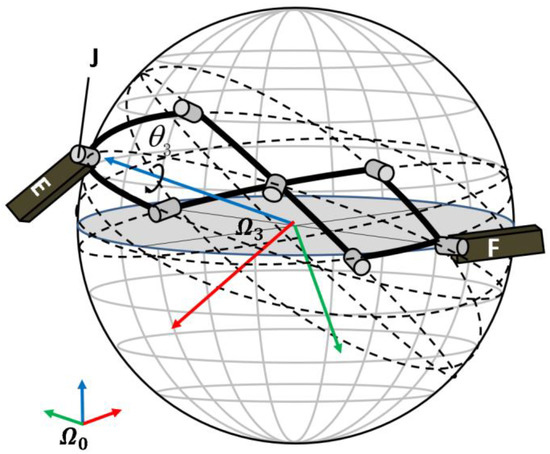 Because the is a right angle, the second term on the right side of Equation (1) is always zero. So, the total pitch angle of the spherical scissor mechanism under its maximum deployed condition can be derived as follows: